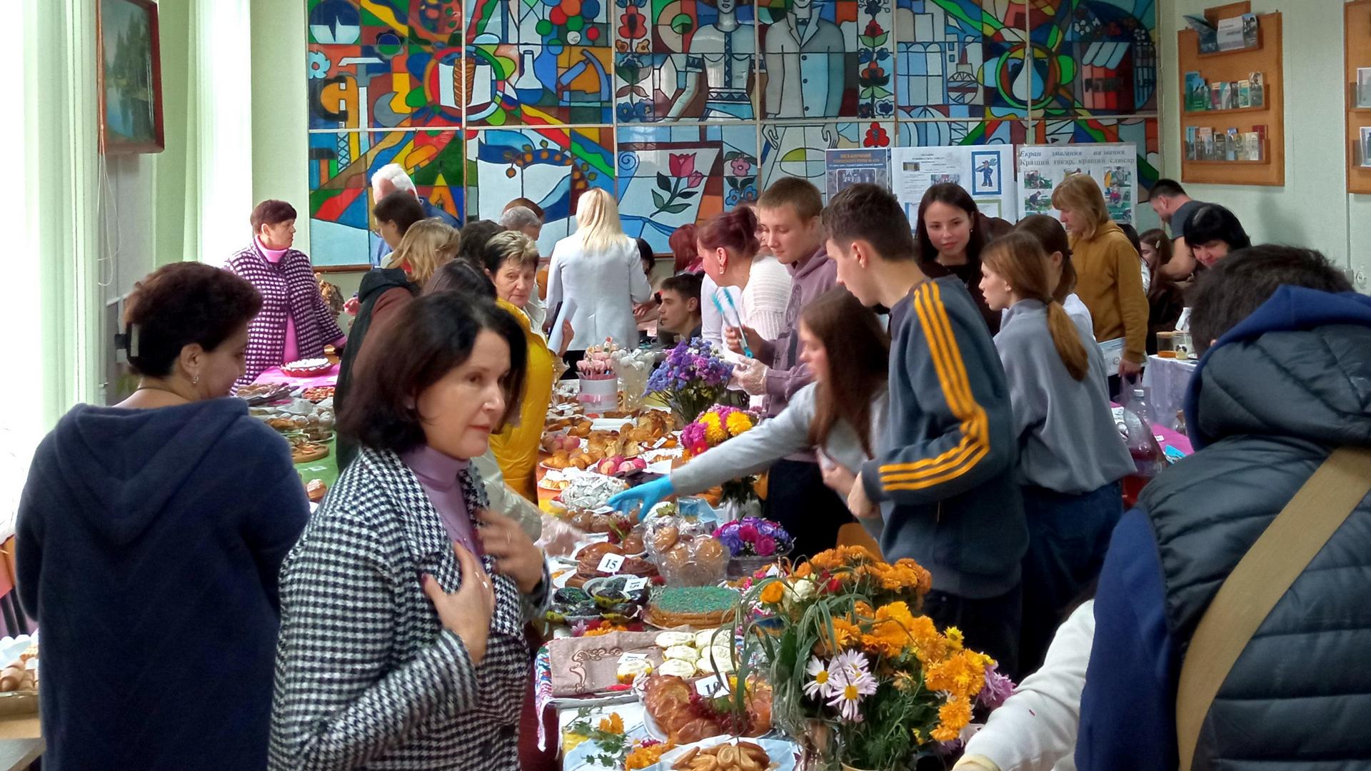 А далі гостей запросили відвідати благодійний ярмарок, кошти з якого будуть передані на потреби наших славних захисників. Смаколики для ярмарку приготували здобувачі освіти, викладачі та працівники коледжу. Це був справжній вибух смаків, кольорів і різноманіття товарів, виготовлених власноруч.